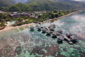 Lage: Direkt an einem feinsandigen Traumstrand im Nordosten von Moorea erwartet Sie das im polynesischen Stil erbaute Manava Beach Resort & Spa, welches Tradition mit Moderne vereint. Die Cook’ s Bay mit einigen kleinen Geschäften sowie Restaurants und Bars ist in der Nähe gelegen. Vom Flughafen bzw. Fährterminal trennen Sie 10 bis 15 Fahrminuten.